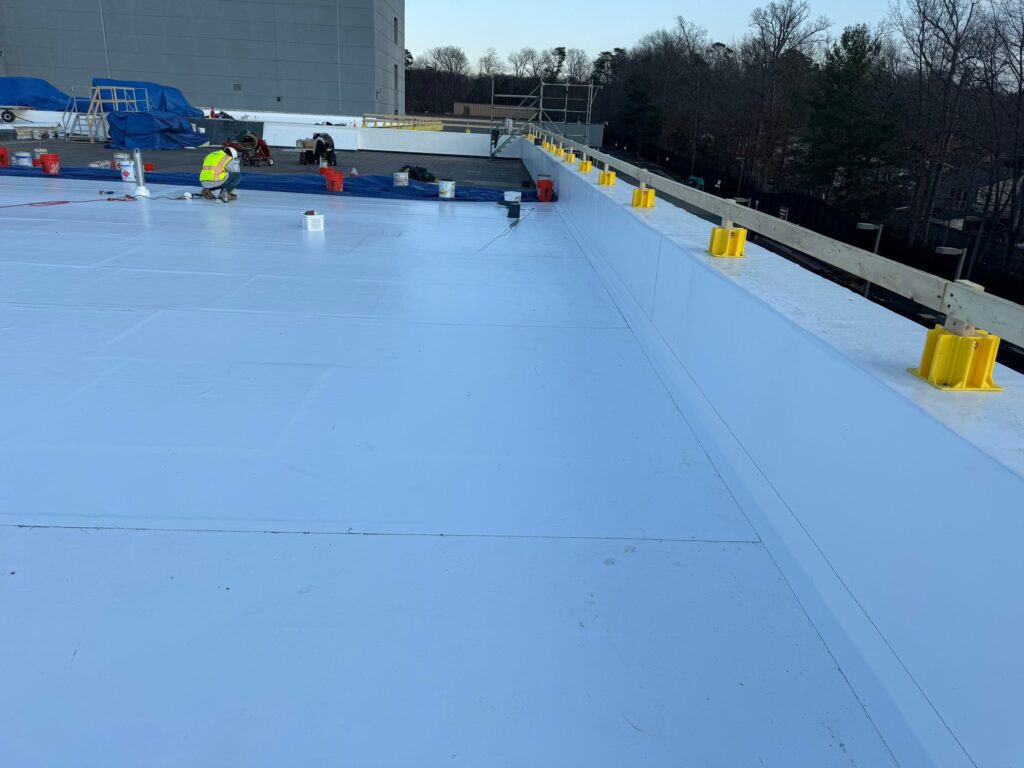 Throughout the course of this project, NECC collaborated closely with DPR across multiple phases to ensure the roofing system not only met technical requirements but also supported the critical function of the data center. This required careful planning, coordination, and phased execution to maintain the building’s integrity and allow daily operations to continue without disruption. By sequencing work strategically and implementing strict quality controls, NECC helped safeguard the facility’s ability to store and protect vital information while delivering an upgraded roofing system designed for long-term performance and resilience.