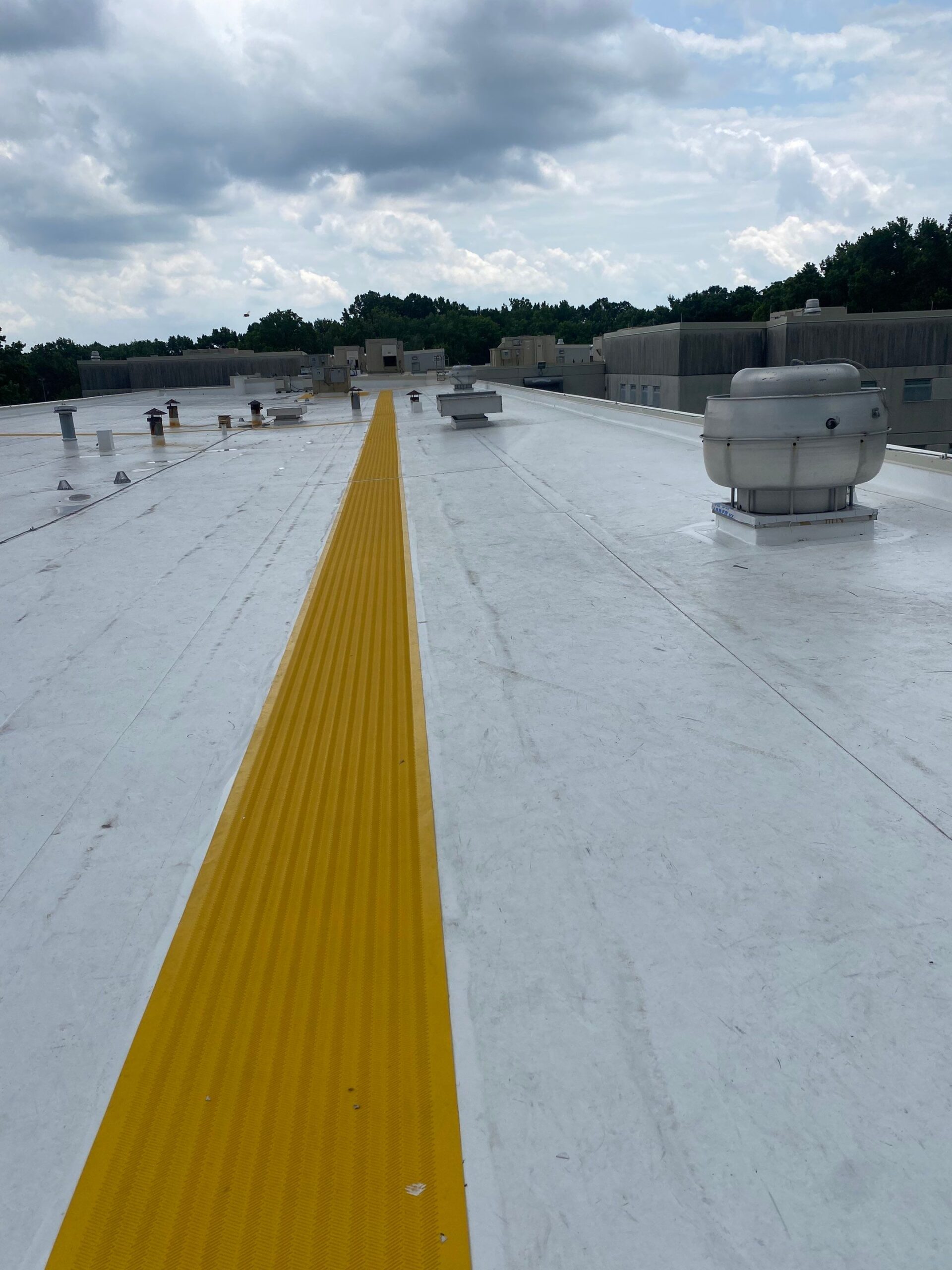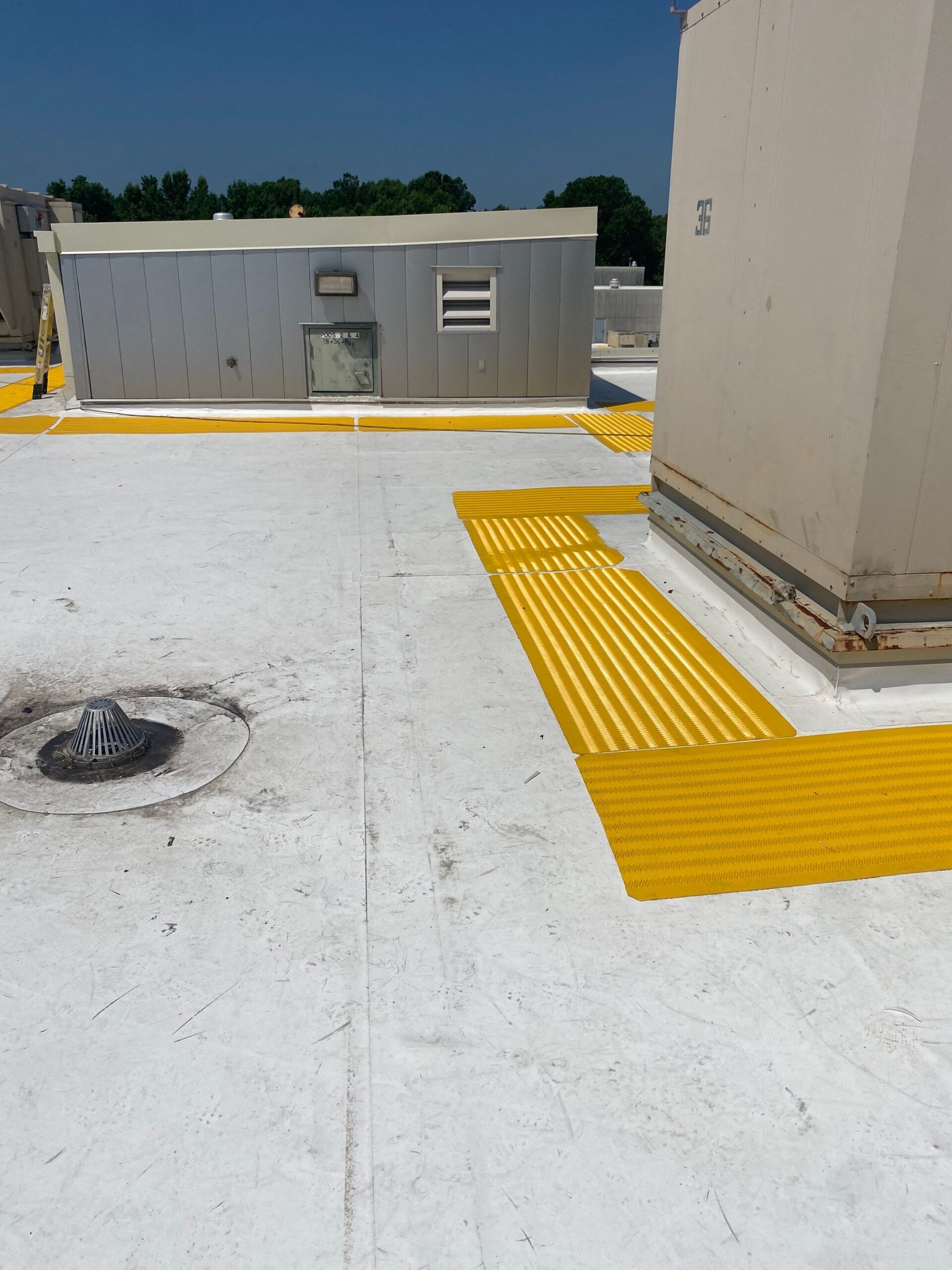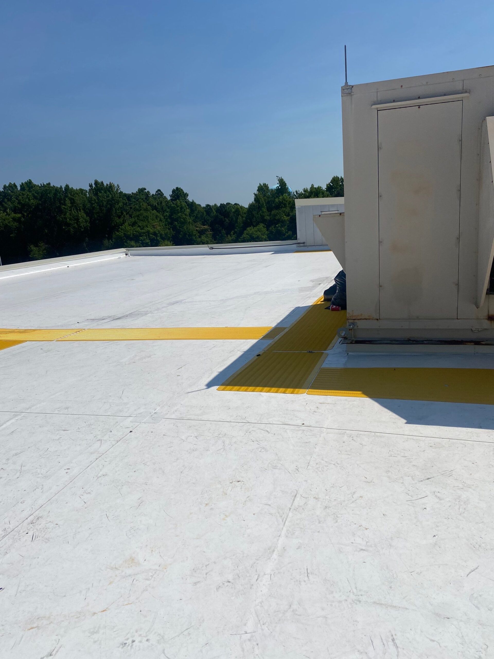 NECC’s scope of work for the Hampton Roads Regional Jail roof replacement project included a one-day safety orientation, selective demolition of the existing roofing system, and installation of a Carlisle Syntec PVC roof system with insulation, vapor barrier, walkway pads, and flashings. The new system was designed to meet NRCA standards, achieve an average R-30 value, and carry long-term performance warranties. Additional work included LP recertification, scaffolding, walk pad installation, and coordination for rooftop unit handling.